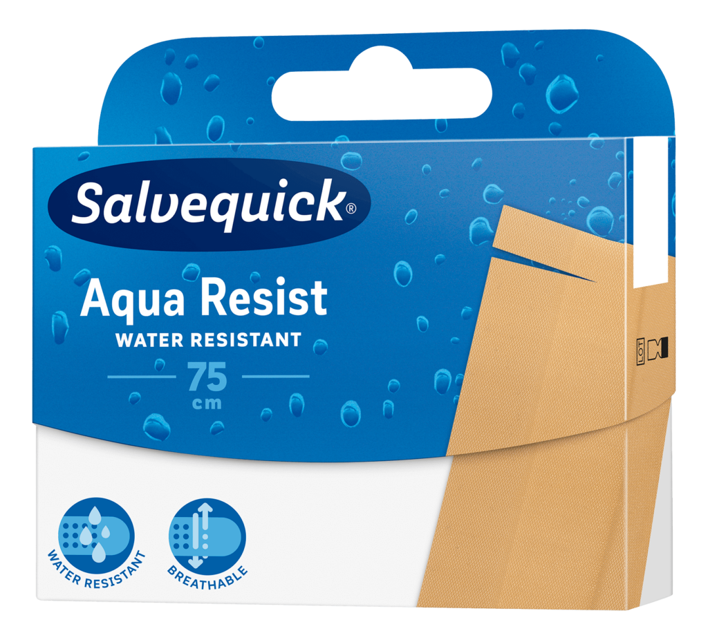 Az Aqua Resist ragtapasz kisebb sebekhez, például enyhe, felszínes vágáshoz a legalkalmasabb.
